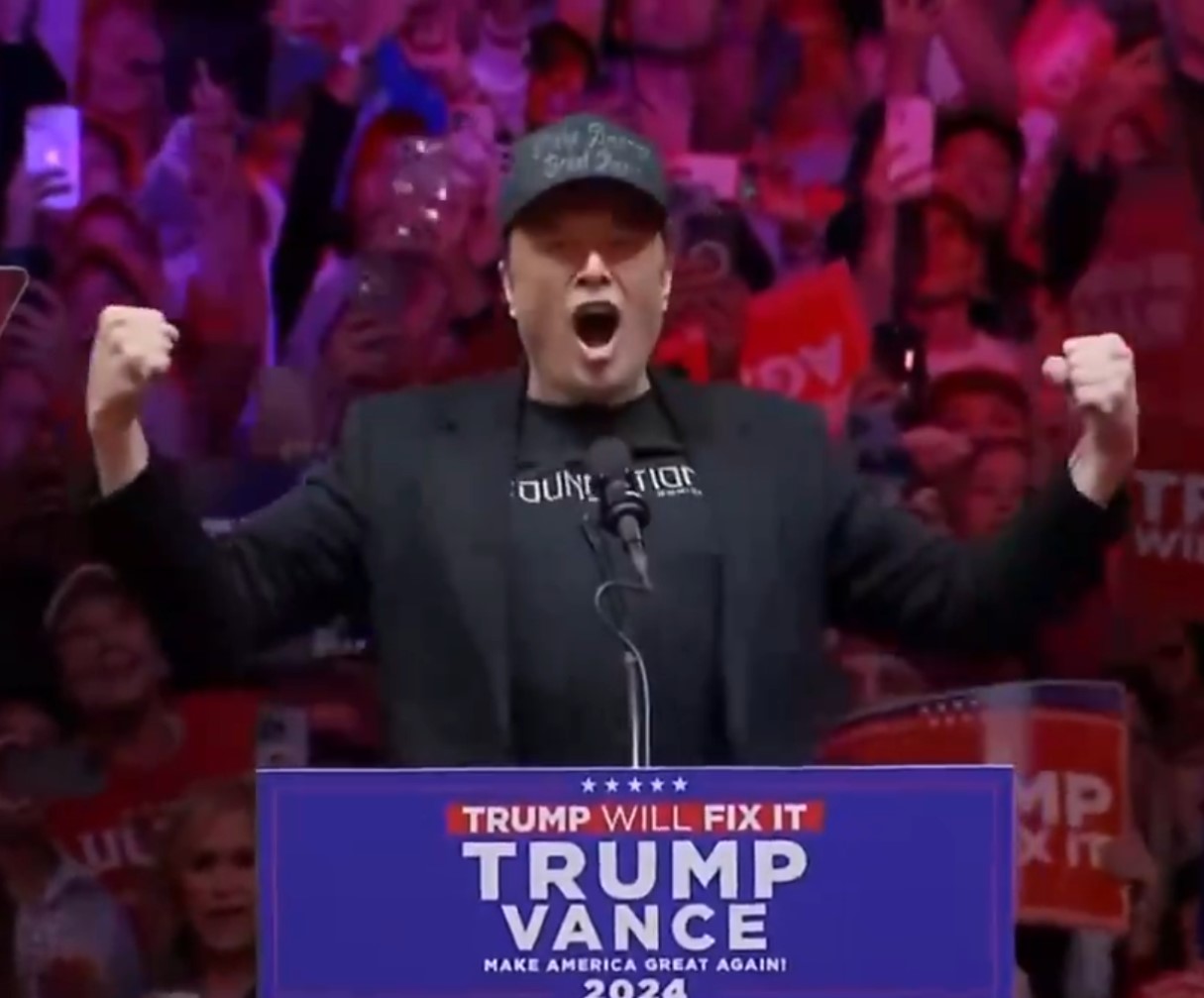 Embroidered “Maga 2024” logo in a bold, Gothic font