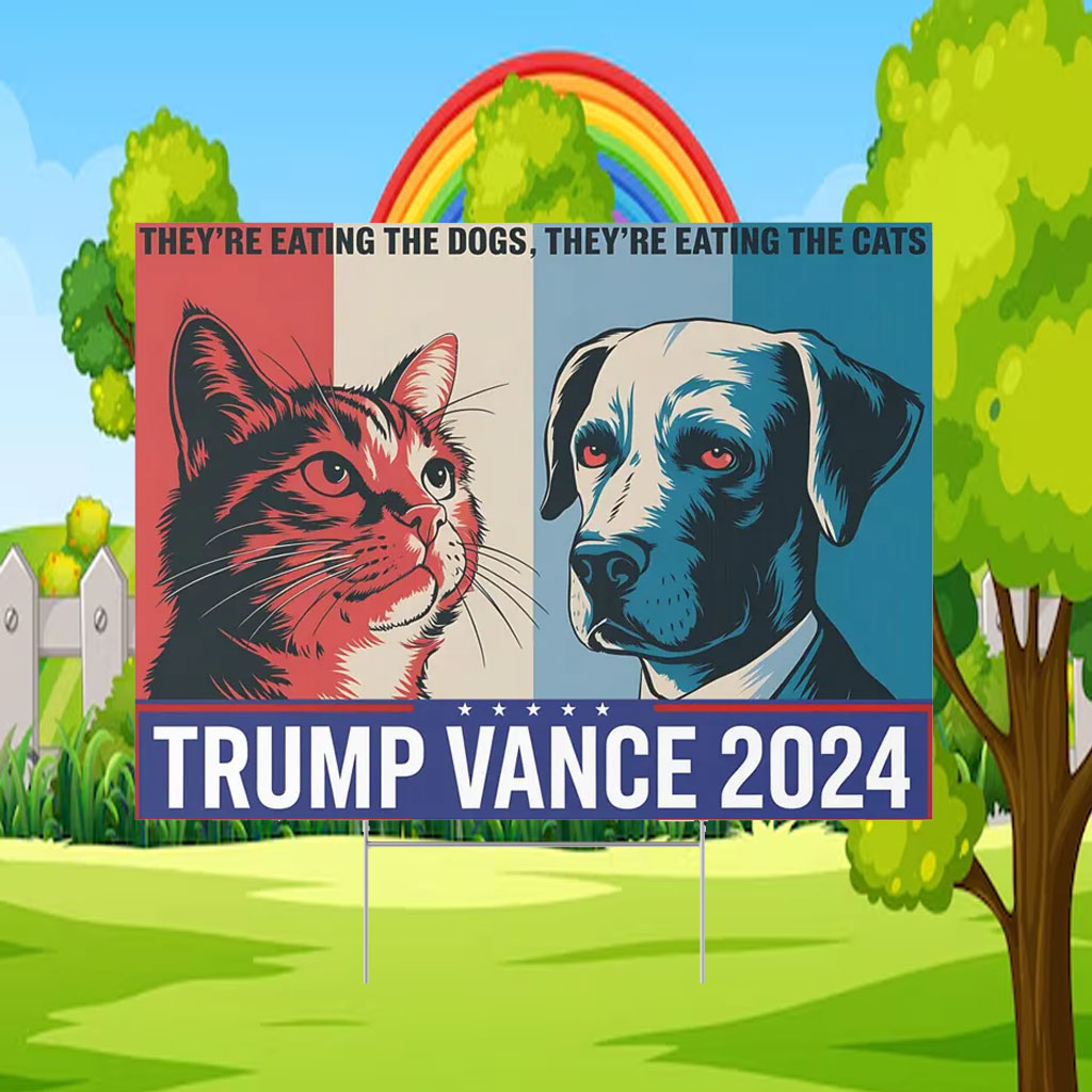 Show your support for Trump and Vance with these eye-catching yard signs featuring adorable dogs and cats!