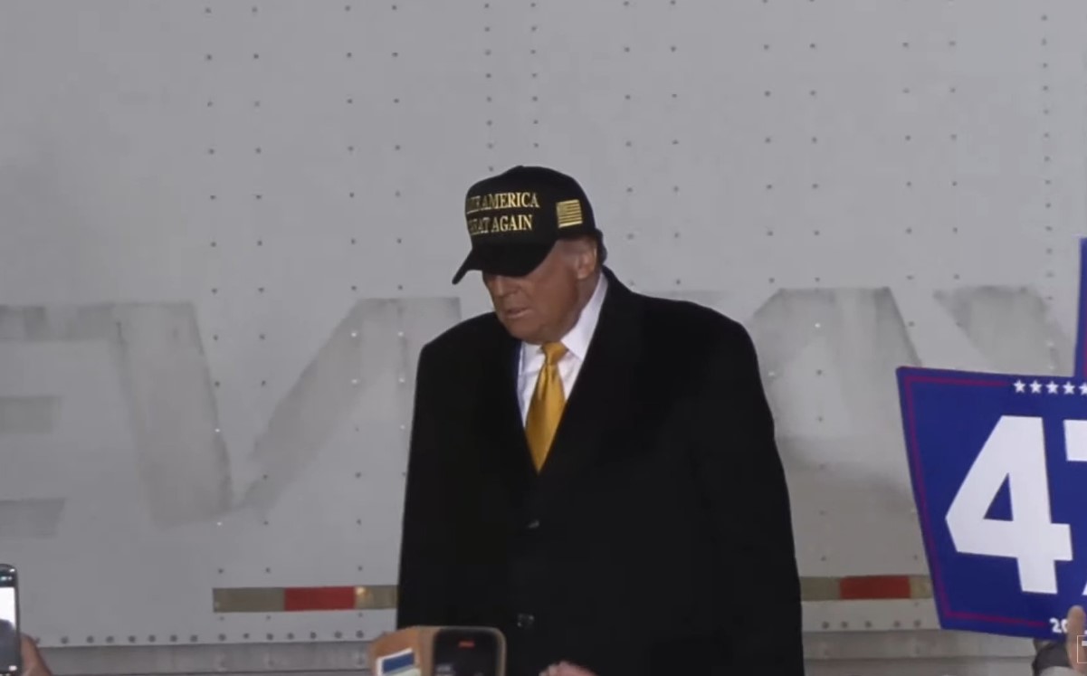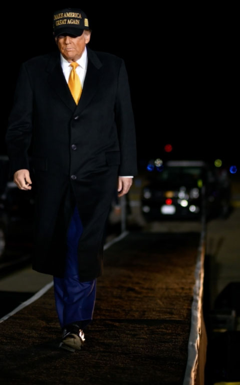 Embroidered “Make America Great Again” slogan in shimmering gold thread
