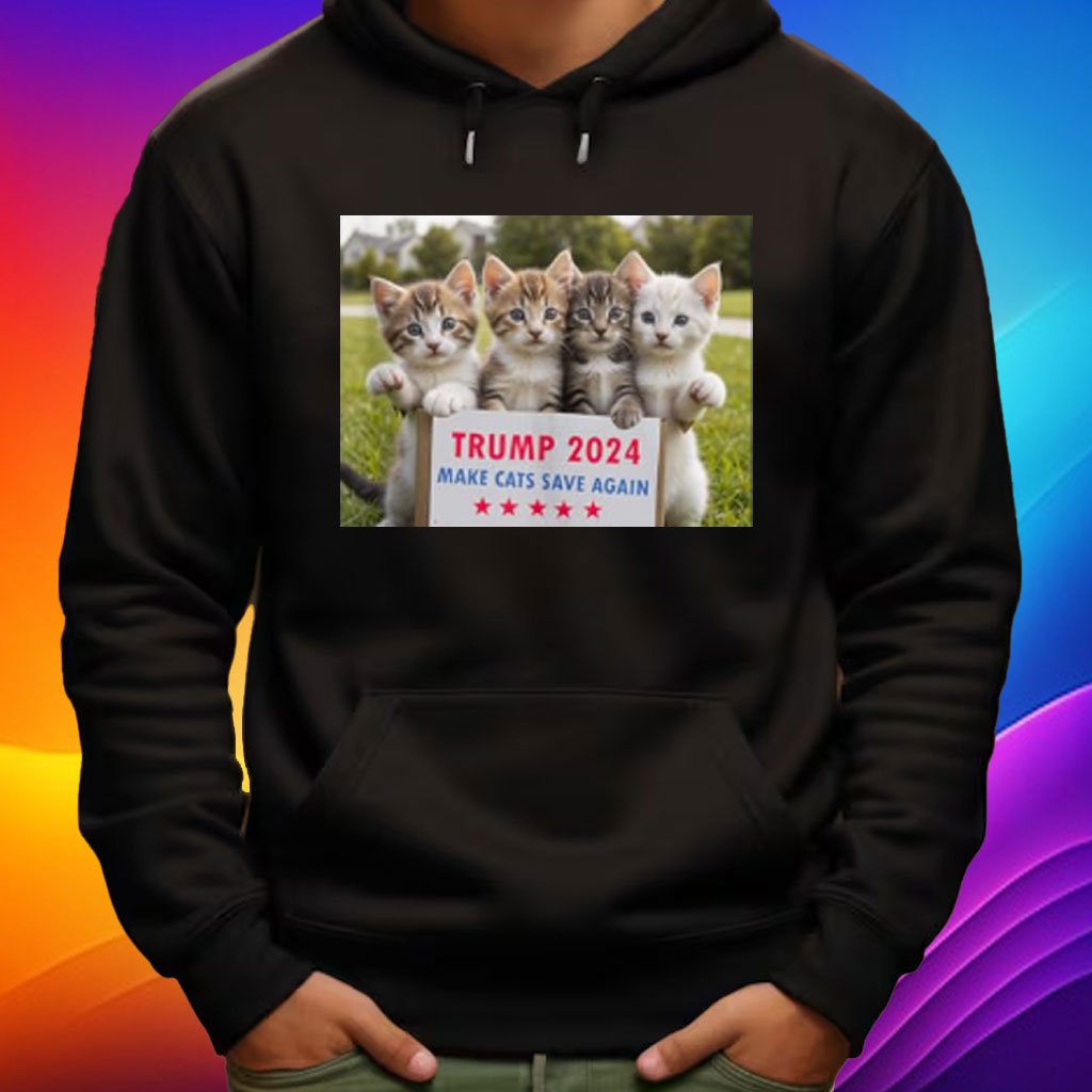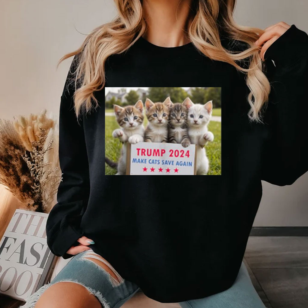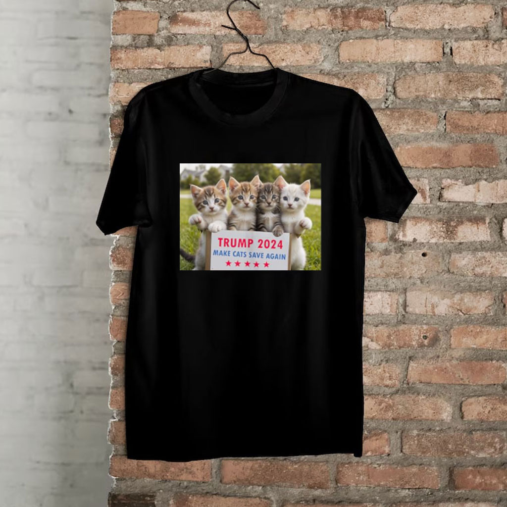 Crafted from premium cotton, this shirt is soft, breathable, and comfortable to wear all day long. The bold, eye-catching design features a playful cat graphic with the slogan “Save Our Cat Vote For Trump 2024 Make Cats Save Again.”