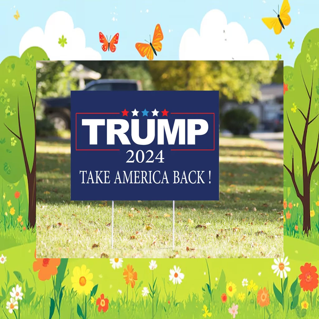 Show your unwavering support for President Trump and his mission to restore America to its former glory with our bold and eye-catching Trump Take America Back Yard Sign.