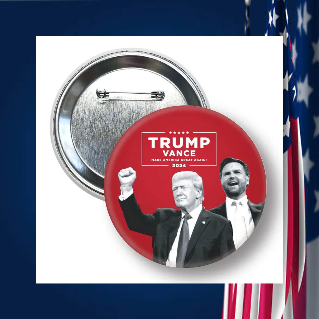 Order your Trump Vance Photo 2024 Button today and join the movement to Make America Great Again!